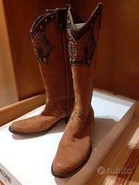 Stivali Moschino in pelle scamosciata con borchie taglia 36 color cammello. Indossati qualche volta non presentano difetti eccetto la tomaia che è leggermente segnata