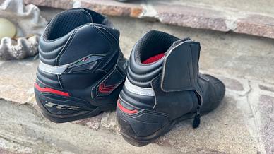 Stivali racing TCX Roadster Stivali strada bassa. Microfibra leggero e resistente parte superiore. Fodera interna traspirante AIR TECH. In forma suprema e grande comfort per il pilota. Flessibile e confortevole. Chiusura con velcro e cerniera. Slider in TPU sostituibili. Rinforzo sul malleolo. TPU protezione della caviglia doble densità per assorbire gli impatti. Protezione per il cambio. Suola anatomica removibile. Suola antiscivolo.