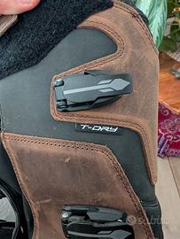 pelle scamosciata, rinforzo tibia, punta e tallone,membrana T-Dry resistente all'acqua,chiusura 3 fibbie regolabili,suola in gomma con specifiche aree di grip