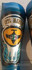 Stivali da moto Stylmartin. Logo originale (the Eagle) Nuovo mai usato in buone condizioni, realizzato in pelle pieno fiore. Anche l'interno è foderato in pelle. Chiusura laterale con due fibbie metallo vintage e due strap velcro. Colore blu con placca para tibia decorata. Puntale in acciaio applicato con viti sulla punta, comunque removibile. Suola gomma e costruzione snodo zona flessione avampiede. Edizione speciale primi anni 80, tutto rigorosamente MADE IN ITALY . Taglia 40. Ideale per i nostalgici del vintage o per collezionisti.
