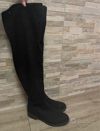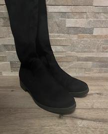 Stivali neri effetto scamosciato, gambale alto (63 cm), super comodi e versatili. Ideali per autunno/inverno, stanno bene sia con jeans che vestiti. • Condizioni: ottime • Piccolo difetto sulla punta (vedi ultima foto) • Pagati 60€ su Zalando • Prezzo trattabile ** Vestono bene e slanciano la gamba!
