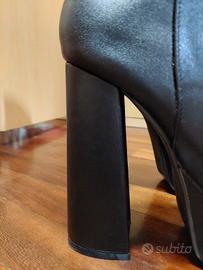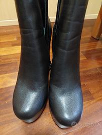 Stivali neri in simil pelle, molto alti con un tacco di 15 cm ma resi comodi dall alto plateau, si mettono grazie alla comoda cerniera. Molto comodi da usare, li ho usati solo una volta per un occasione particolare, dunque sono da considerarsi praticamente nuovi. il numero è un 40