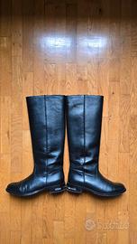 Stivali neri da donna Guess portati poco Pelle nera nr. 37 Piccola staffa d'acciao sul tacco con scritta Guess