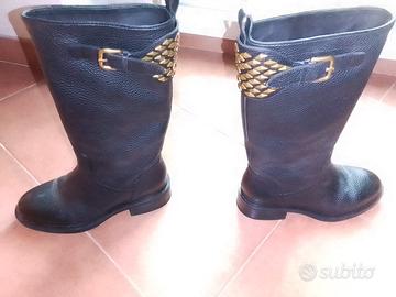 vendesi stivali neri in pelle Bruno Premi come nuovi con borchie e fibia numero 36