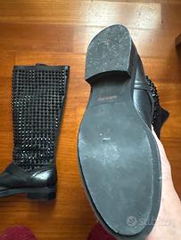 Belli e comodi questi stivali in pelle e borchie nere, comunque raffinati, misura 37.made in Italy, tacco basso. Ottime condizioni.