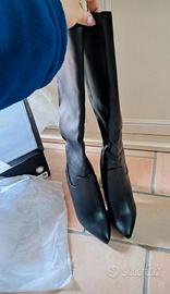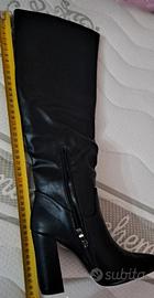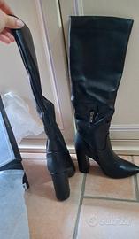 Stivali neri in simil pelle n.36 Altezza tacco: 10 cm Altezza stivale intero: 49 cm Circonferenza polpaccio: 34 cm Nuovi mai indossati