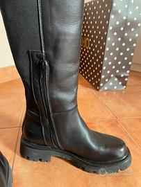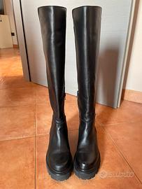 Stivali neri Liu Jo apoena sopra il ginocchio. In pelle ed elastico. Altezza gambale da terra 51 cm. Misura 37