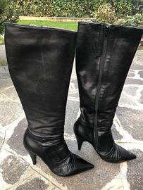 Stivali in pelle nera, indossati poche volte. Tacco 10 cm, Numero 39