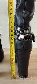 Eleganti stivali neri da donna con tacco, perfetti per completare ogni outfit.