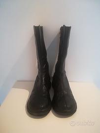Stivali neri, tipo bikers con cerniera laterale e suola in gomma. Sono numero 38, ma vestono un 37. Ho inserito una soletta in cuoio che non penso sia removibile, comunque sono molto comodi.