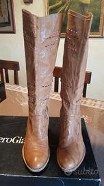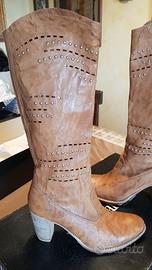 Stivali in pelle traforata estivi , tg 38, color cuoio, tacco 7 cm, in ottimo stato , usati pochissimo
