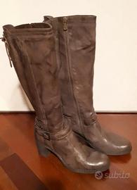 Bellissimi stivali marca NERO GIARDINI originali in vera pelle. Tacco 7 cm, chiusura laterale con cerniera e laccetti sul retro. Pelle molto morbida, molto comodi. Numero 39. Usati pochissime volte, praticamente quasi nuovi, suola e tacco in ottimo stato.