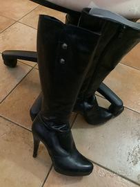 Eleganti stivali alti in pelle. - Dettaglio con due bottoni decorativi sul gambale. - Tacco alto e plateau anteriore.