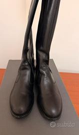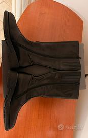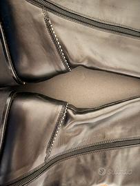 Vendo per inutilizzo questi stivali da donna colore nero, numero 41 EUR. In vera pelle liscia, zip laterale e piccoli dettagli metallici. Interno in pelle chiara e molto morbida, suola robusta e confortevole.
