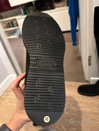 Msrchio italiano di qualità marua cristina . Stivaki camoscio nero, sopra ginocchio , para e tacco basso . Leggermente elasticizzati x aderire al ginocchio . Molto confortevole, nuneto 40.