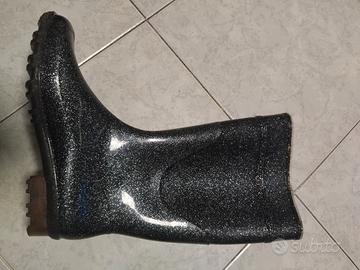 Stivali n. 37 da pioggia glitterati in gomma, nuovi, mai utilizzati.