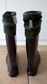 Vendo stivali donna, nuovi mai usati, taglia 37, colore nero lucido, in gomma, con scaldamuscoli marca Nannini, removibili. Ottimo prodotto, tutto italiano, utilizzabile sia con gonna/vestito o pantalone elegante sia con un abbigliamento casual e sportivo. Capo molto alla moda e versatile con la possibilità di inserire a piacimento i scaldamuscoli rendendo così lo stivale molto accattivante. Nuovi e mai usati, acquistati al prezzo di 95,00 euro.