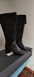 vendo per inutilizzo stivali nuovi Marina Rinaldi numero 41 in pelle scamosciata nera e vernice nera alzabili oltre al ginocchio