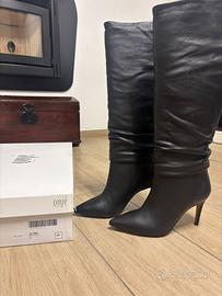 Stivali neri eleganti in vera pelle, marca Ovyé, numero 39. Modello a punta con tacco sottile, perfetti sia con abiti che con jeans o gonne. ✔️ Colore: nero ✔️ Materiale: pelle ✔️ Numero: 39 ✔️ Condizioni: ottime, usati una sola volta (come da foto della suola) ✔️ Calzata regolare Venduti con scatola originale. Motivo della vendita: inutilizzati per errore di acquisto taglia. 💬 Per qualsiasi info o foto aggiuntiva scrivimi