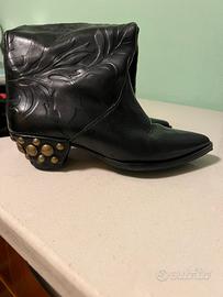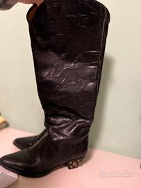 Stivali in pelle lavorata tipo camperos con borchie sul tacco. Suola nuova usati pochissimo.