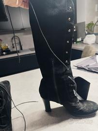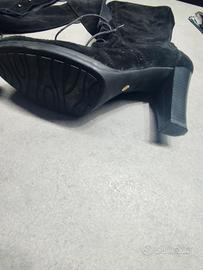 bellissimi stivali di pelle scamosciata nera tg 40 altezza tacco 9 .usati molto poco ottimo stato come da foto. altre misure su richiesta.