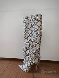 Stivali pitonati con tacco alto, vera pelle, brand Identità Shoes. Indossati una volta, in ottima condizione, prezzo originale 780€