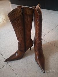 Stivali pitone stampato intagliato, cuoio. N. 38
