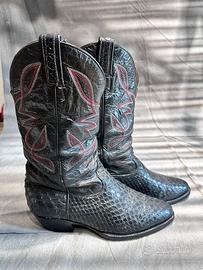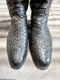 Stivali originali messicani, artigianali, tg. 42,5 calzatura da uomo, in vera pelle di pitone nero. Usati ma ben conservati.