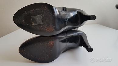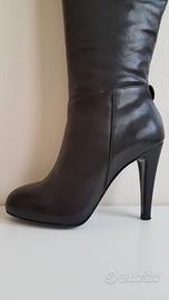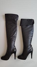 Vendo questi bellissimi stivali in nappa nera e cuoio, con plateau, alti sopra il ginocchio. Usati solo una volta sono in ottime condizioni. Vendo a meno della metà del prezzo, un vero affare.
