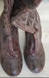 Vendo stivali "Roberto Botella" vera pelle con inserti di pelle cucita, n. 37. Le condizioni sono molto buone. In vendita a soli 10 euro. Ritiro ad Aquileia o spedizione in tutta Italia con Tuttosubito. Pagamento tramite PayPal o bonifico bancario. Venditore serio, non esitate a contattarmi per altre informazioni o foto.