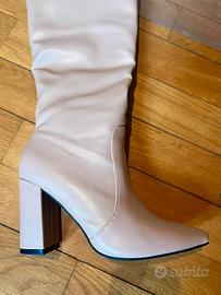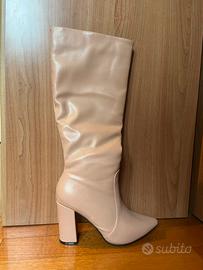 Stivali rosa alti. Il numero è 37. Il tacco è alto 10 cm
