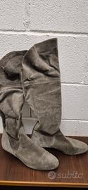 Stivali donna scamosciati colore grigio, numero 40, vestibilità normale, tacco cm 2, come nuovi, con risvolta