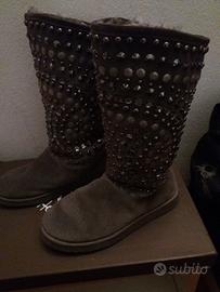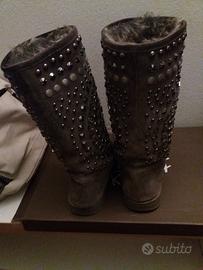 Stivali scamoscisto. interno in pelo. molto caldi. colore grigio topo. lavorazione borchie