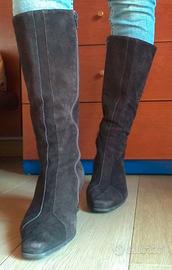 Stivali scamosciati Confort colore marrone cioccolato con ricamo a forma di fiore.
