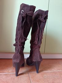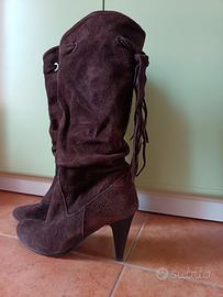 Stivali scamosciati marroni,n.39,tacco 9cm,usati ma in buono stato