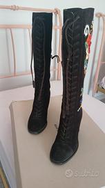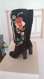 Stivali scamosciati color ebano con particolare fiori ricamatimarca Miu Miu in ottime condizioni numero 36 tacco 9 cm. vendo al miglior offerente.