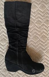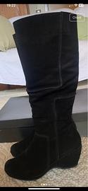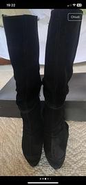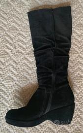 Stivali scamosciato colore nero Plateau davanti h.cm. 2,5 - tacco dietro h.cm.8 Taglia 38 In ottime condizioni Marca: “Lundi Blue “