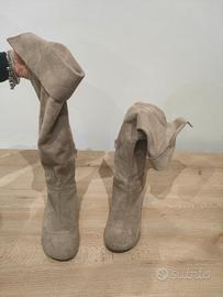 vendo stivali da donna scamosciati numero 36, colore beige, praticamente nuovi.