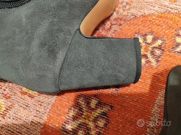 Vendo stivali grigi, scamosciati ,a punta,tacco grosso altezza 7cm,taglia 38,marchio Clizia. Vendo perché non riesco a portarli ,usato una volta.