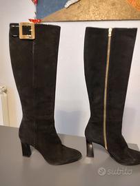 Stivali Sebastian n.40 in camoscio nero con fibbia e tacco dorato da 8cm. Usati una volta.