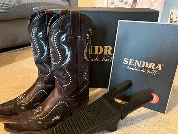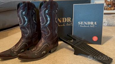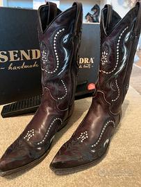 Stivali da cawgirl Sendra, in cuoio marrone con ricamo bianco, molto morbidi e comodi perfetti per ballare il country.