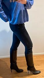 Stivali Sergio Rossi Madame realizzati in morbida pelle nera, tacco alto e sottile.