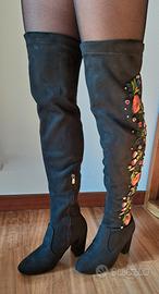 stivali neri con ricamo, scamosciati, molto morbidi, praticamente nuovi perché usati solo per un'occasione.