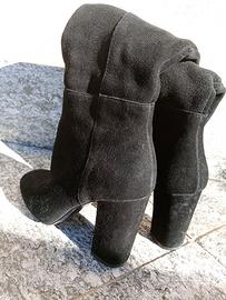 Stivali alti in camoscio nero (numero 37), con tacco largo e comodo, perfetti per un look elegante e versatile. Dotati di zip laterale per una calzata pratica e veloce. Ideali per completare outfit sia casual che formali. In ottime condizioni, usati pochissimo.