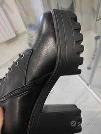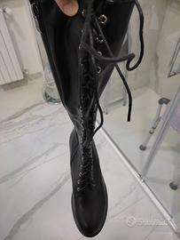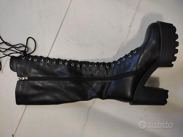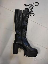 Bellissimi stivali stringati con tacco n39. Come si può vedere sono nuovi, mai utilizzati. Look moderno e ideale per tutti i giorni. Inoltre il platform rende gli stivali molto comodi nonostante il tacco alto. Altezza tacco 10,5 cm. Altezza platform 4,5 cm. Altezza gambale 37 cm