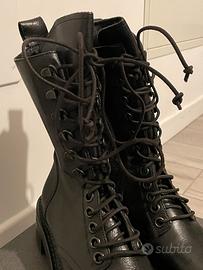 Stivali in pelle altezza polpaccio, con lacci e cerniera laterale interna, usati pochissimo, taglia 36, marca Tosca Blu