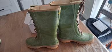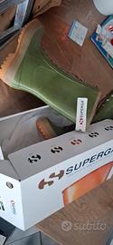 Stivali superga in gomma per campagna acqua impermeabile taglia 42 color olive lacci a stringa particolari come da foto molto belli incluso scatola. Indossati solo un volta per uscire sul piazzale e rimessi in scatola, troppo grandi per me