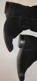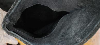 Vendo stivali artigianali SVIG, sopra il ginocchio, in pelle scamosciata nera.