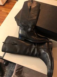 Stivali tipo cavallerizza in pelle vera neri cerniera laterale suola in cuoio gambale alto sopra polpaccio.