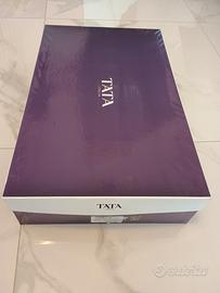Stivali alti (sopra il ginocchio) di Tata, in camoscio neri come si può vedere dalle immagini della suola sono nuovi mai usati, con cursore esterno dorato (finto) e uno interno nero (reale) numero 35, con tacco 12cm, plateau 2,5cm, nella sua confezione originale. Vendo per gravidanza.